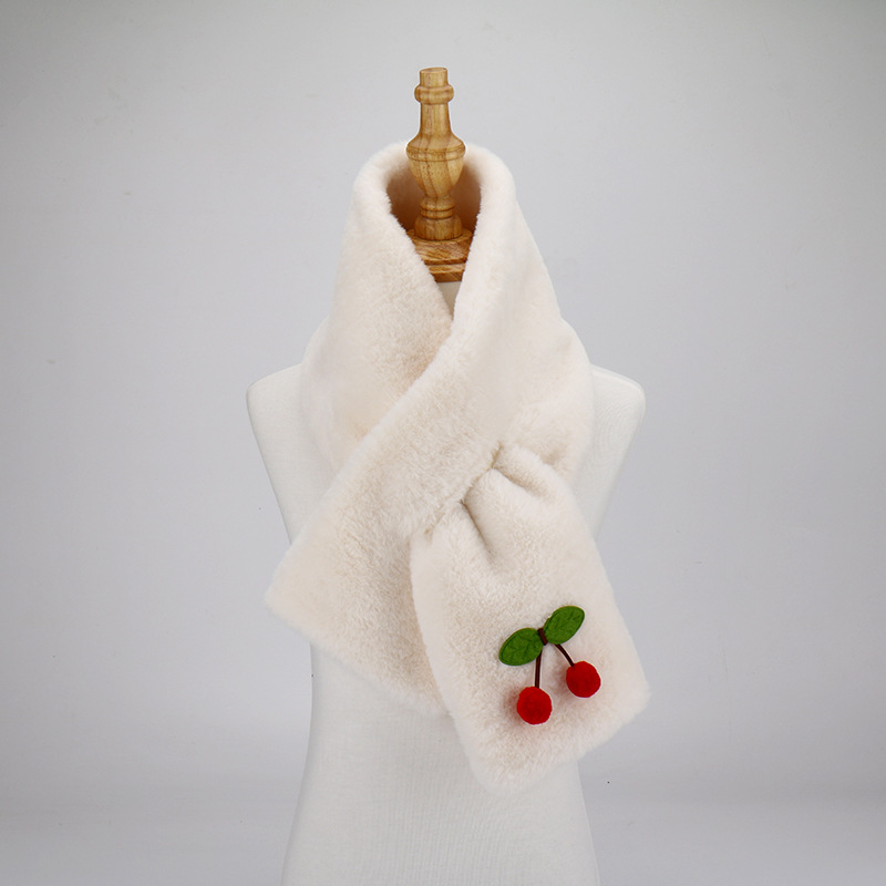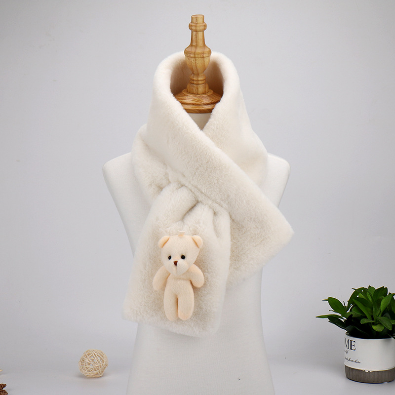 Women's Cute Cartoon Bear Beige Plush Scarf -