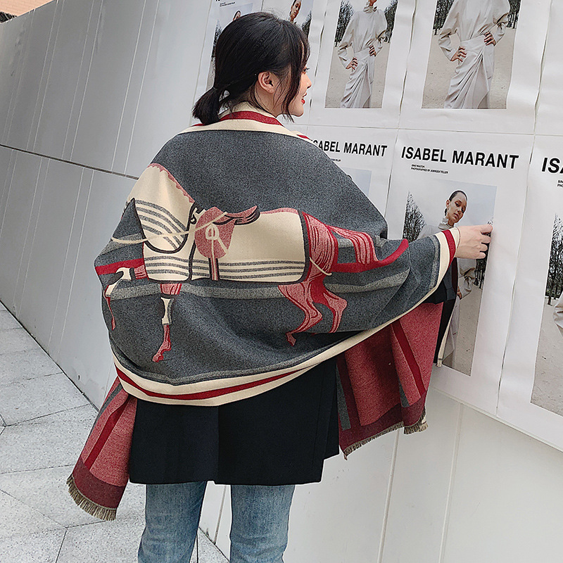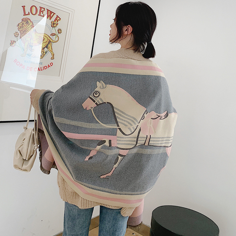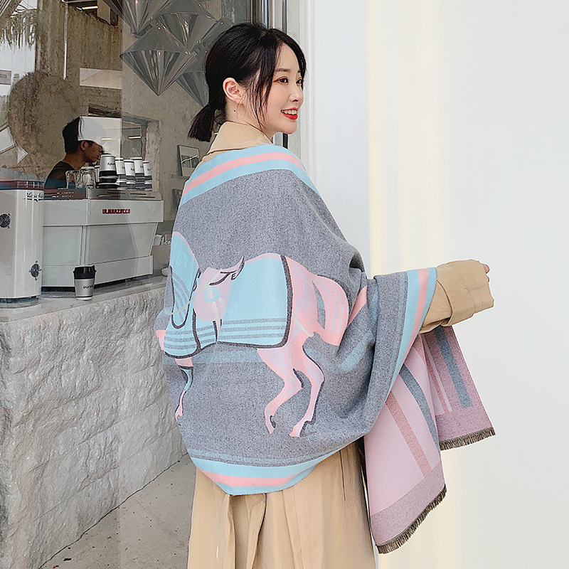 Women's double-faced jacquard cashmere scarf