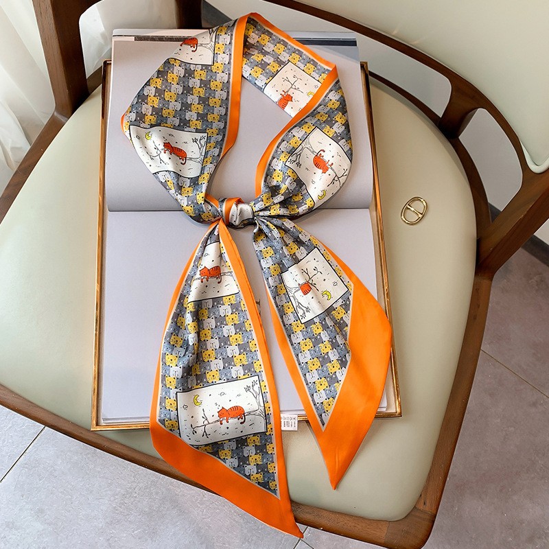 Women's Fashion Vintage Print Decorative Silk Scarf -
