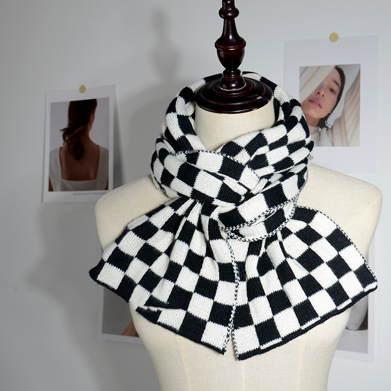 Women's Fashionable Elegant Wool Knitted Thermal Plaid Scarf
