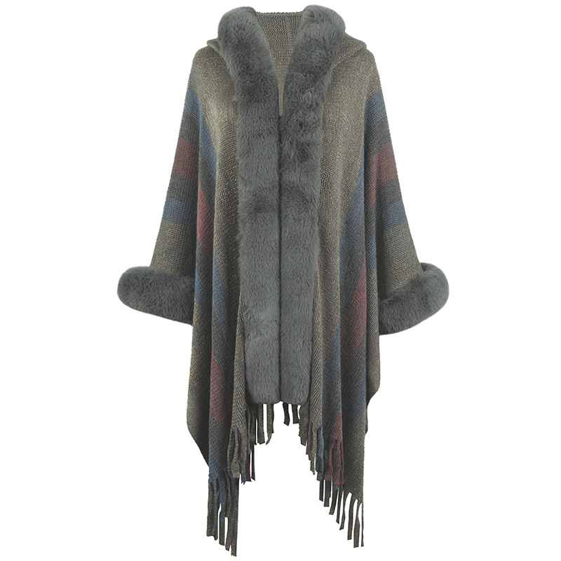 Women's Hooded Cape Autumn And Winter Striped -