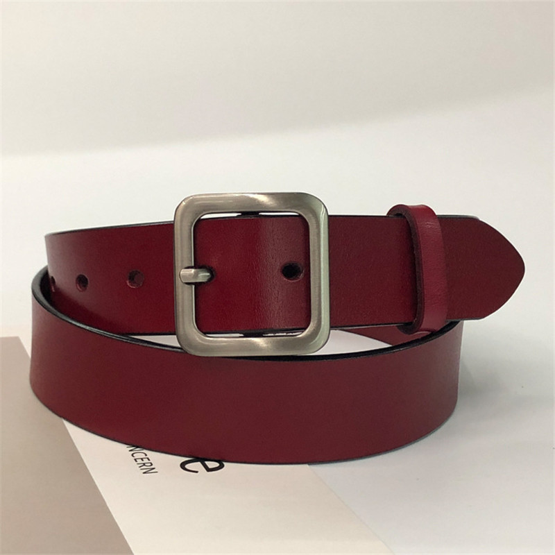 Women's leather belt with square buckle