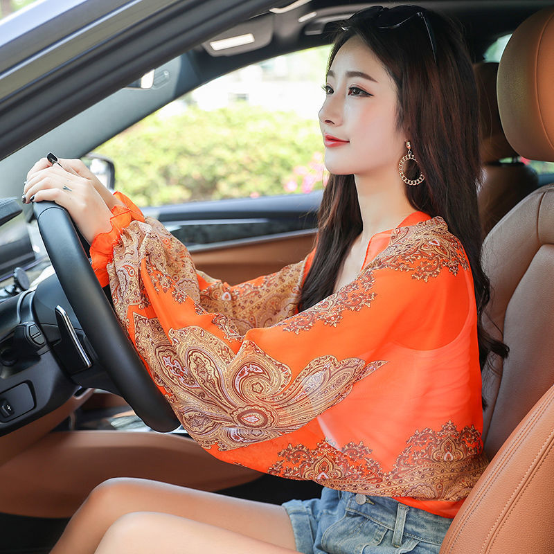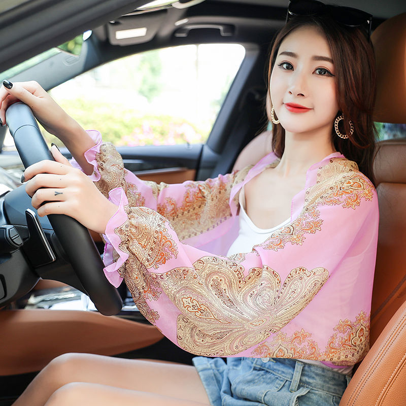 Women'S Long-Sleeved Sunscreen Shawl All-Match Uv Protection Silk Scarf