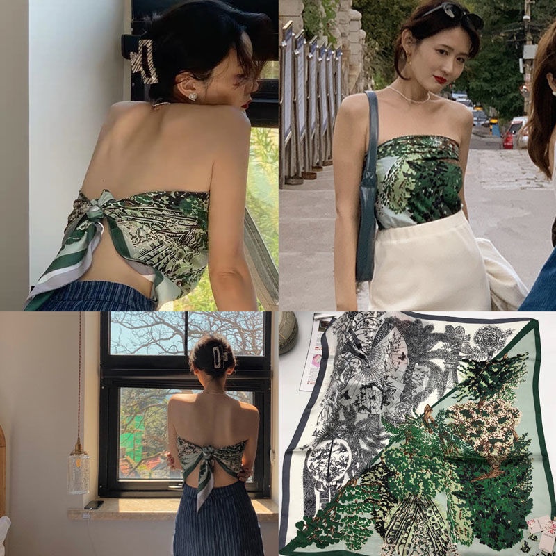 Women's Silk Scarf Strap Retro Tube Top Sun Protection