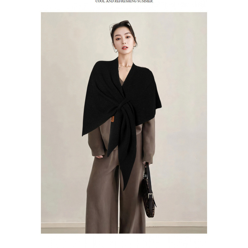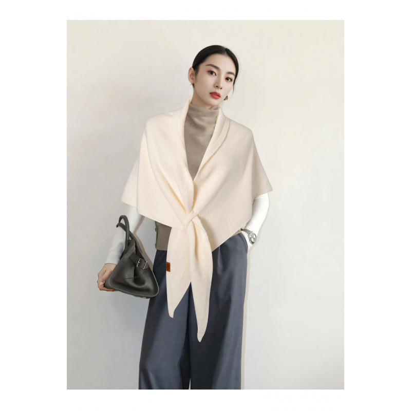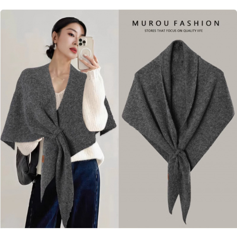 Women's Solid-Color Wool Triangle Neck Scarf For Autumn And Winter -
