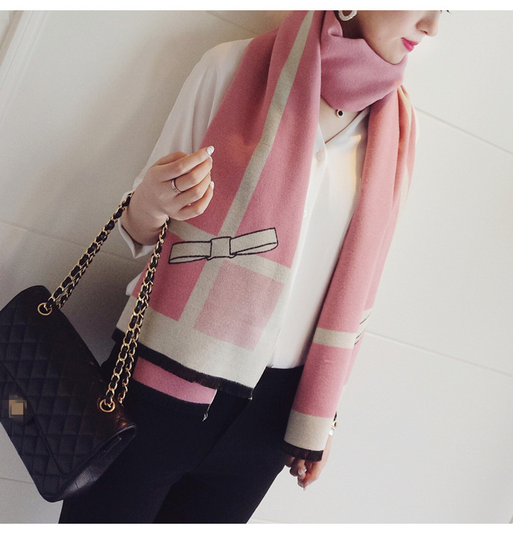 Women's Temperament Color Matching Bow Oversized Double-sided Shawl Dual-use