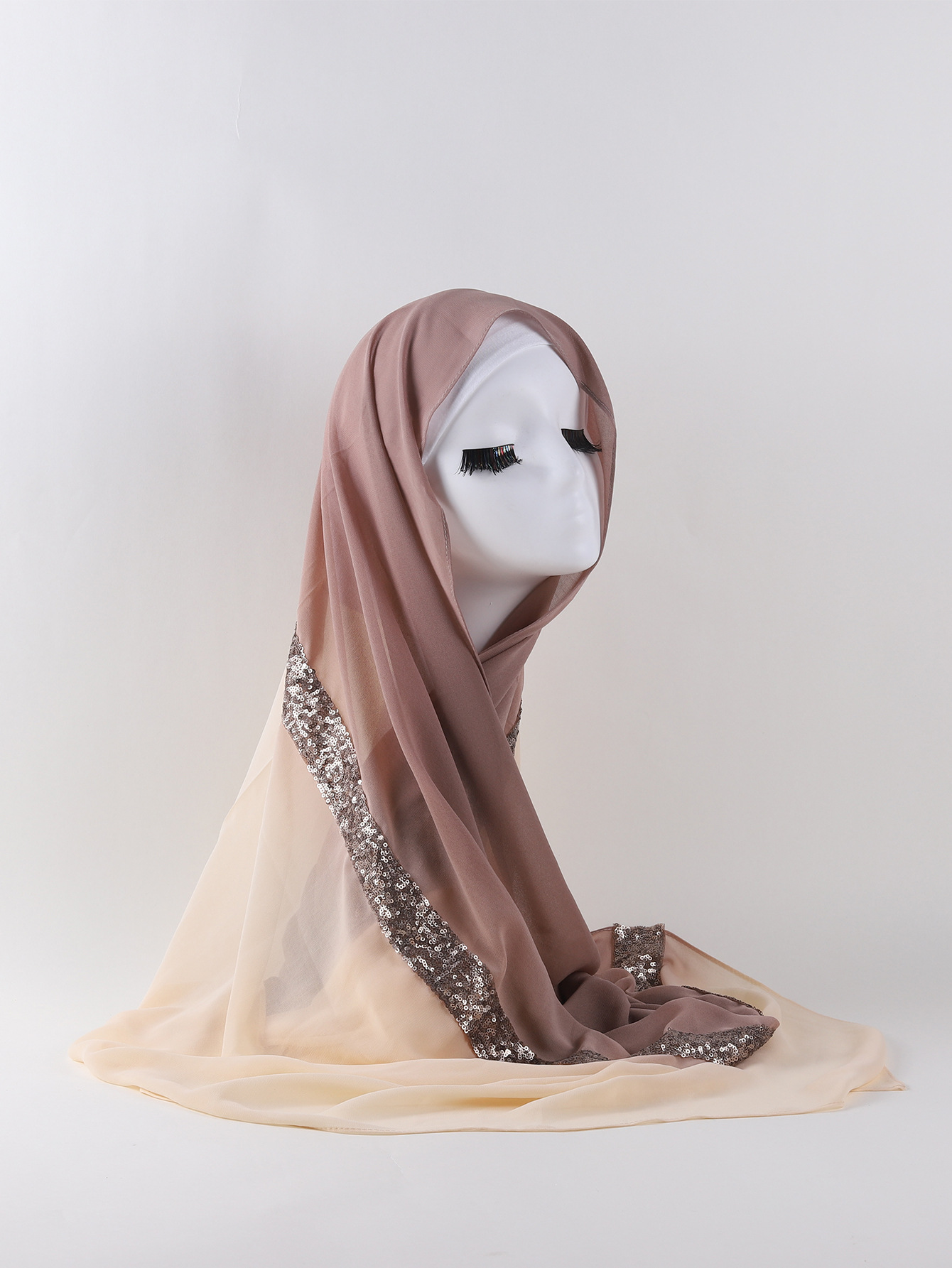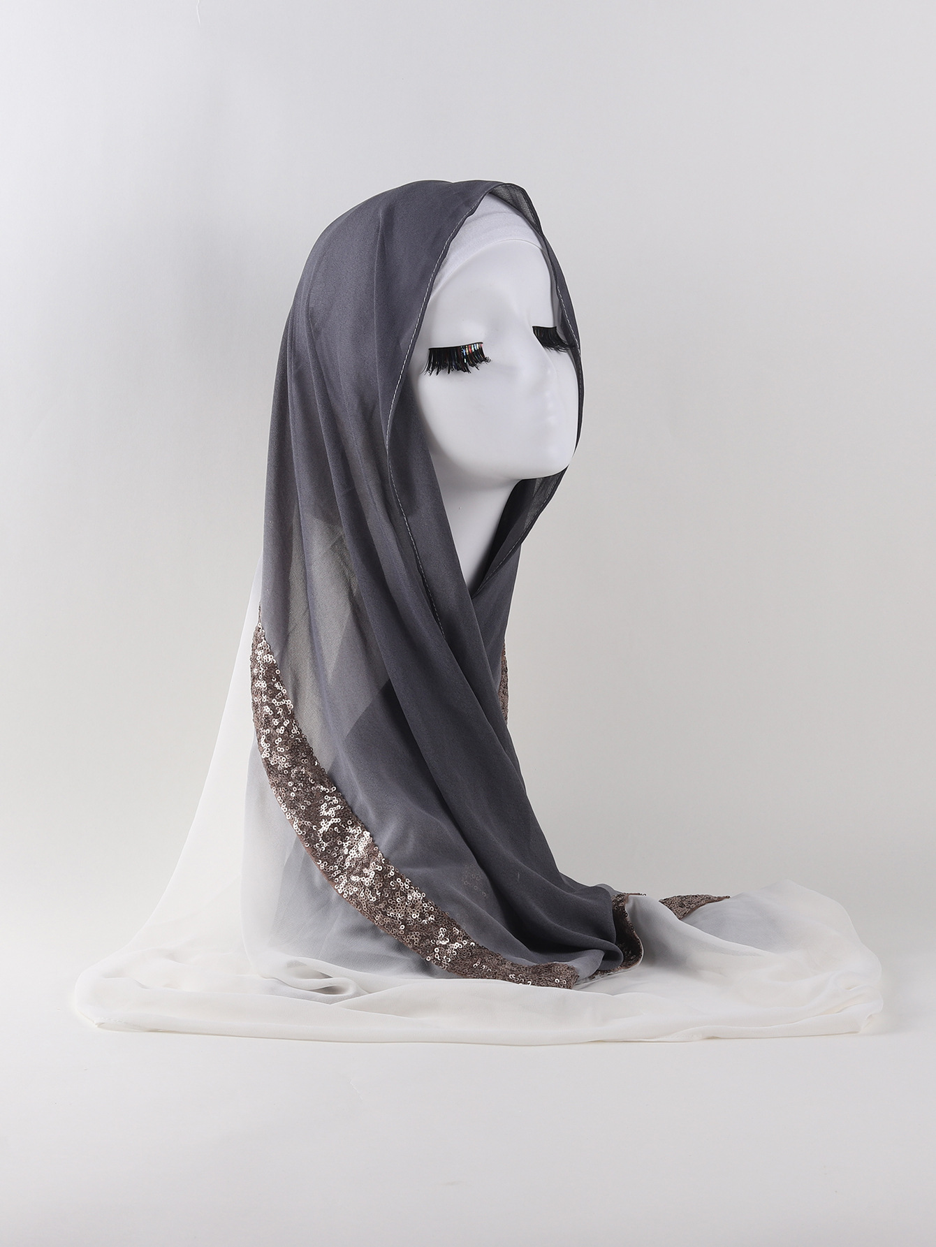 Women's Two-tone Gradient Pearl Chiffon Lace Sequined Scarf -