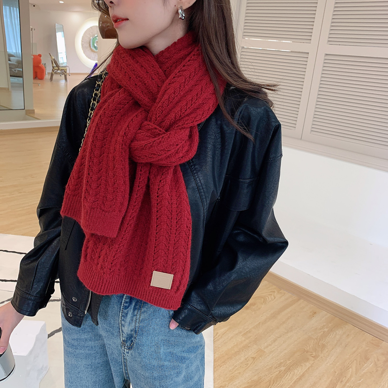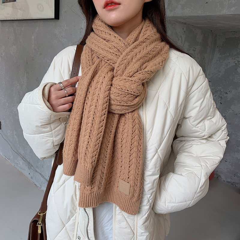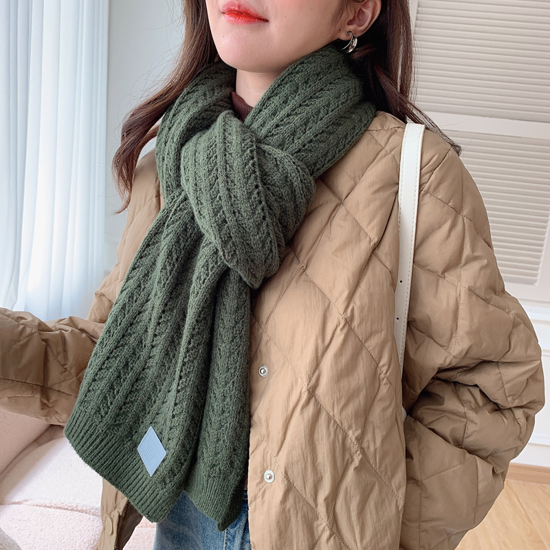 Women's Versatile Warm Solid Color Hollow Knitted Cashmere Scarf -