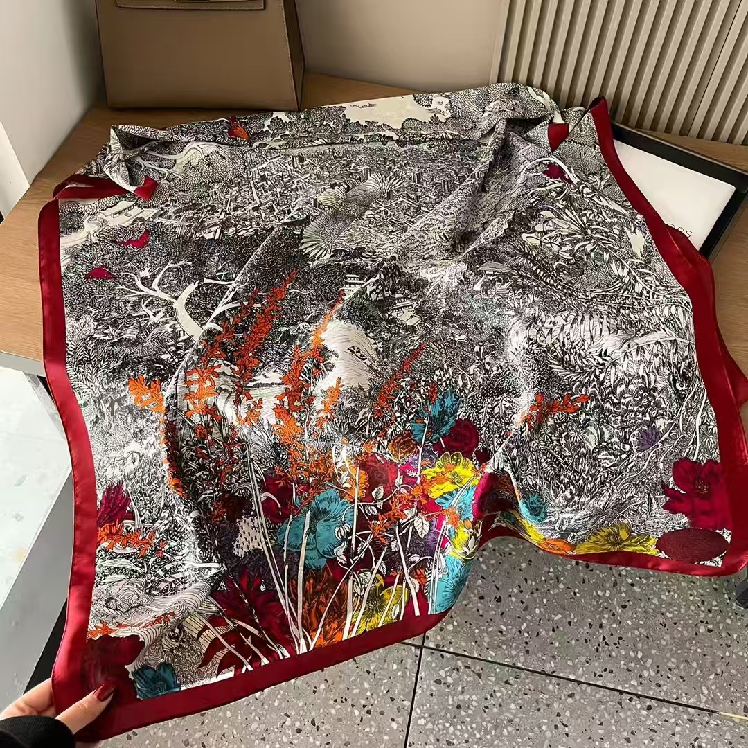 Xiang Yun Satin Long Korean Fashion Printed Scarf